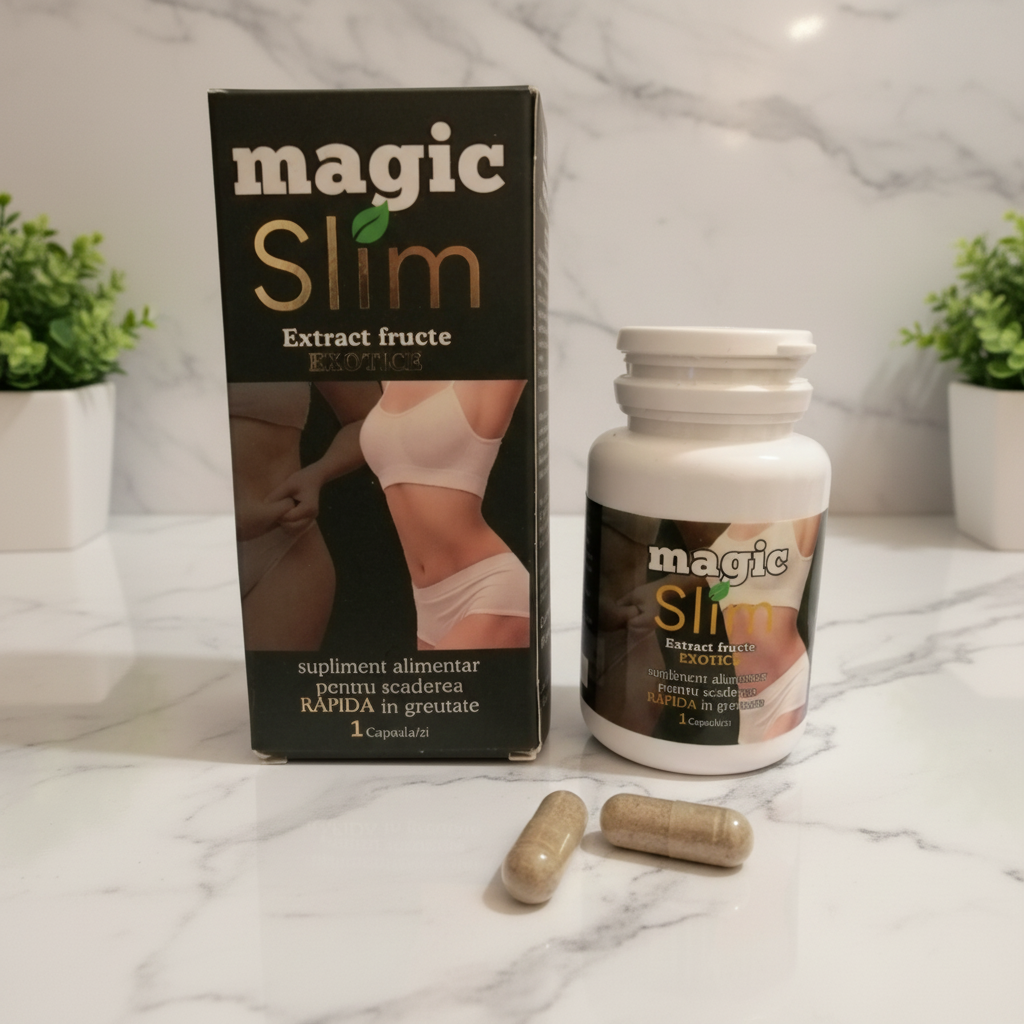 magicSlim este creat pentru tine – un supliment natural inteligent, care ajută corpul să-și regăsească ritmul, să reducă pofta de mâncare și să ardă grăsimea într-un mod echilibrat și sănătos. Cu o formulă concentrată din extracte naturale de plante și fructe exotice, magicSlim acționează acolo unde alte produse doar promit: asupra metabolismului, digestiei și stării generale de bine.
